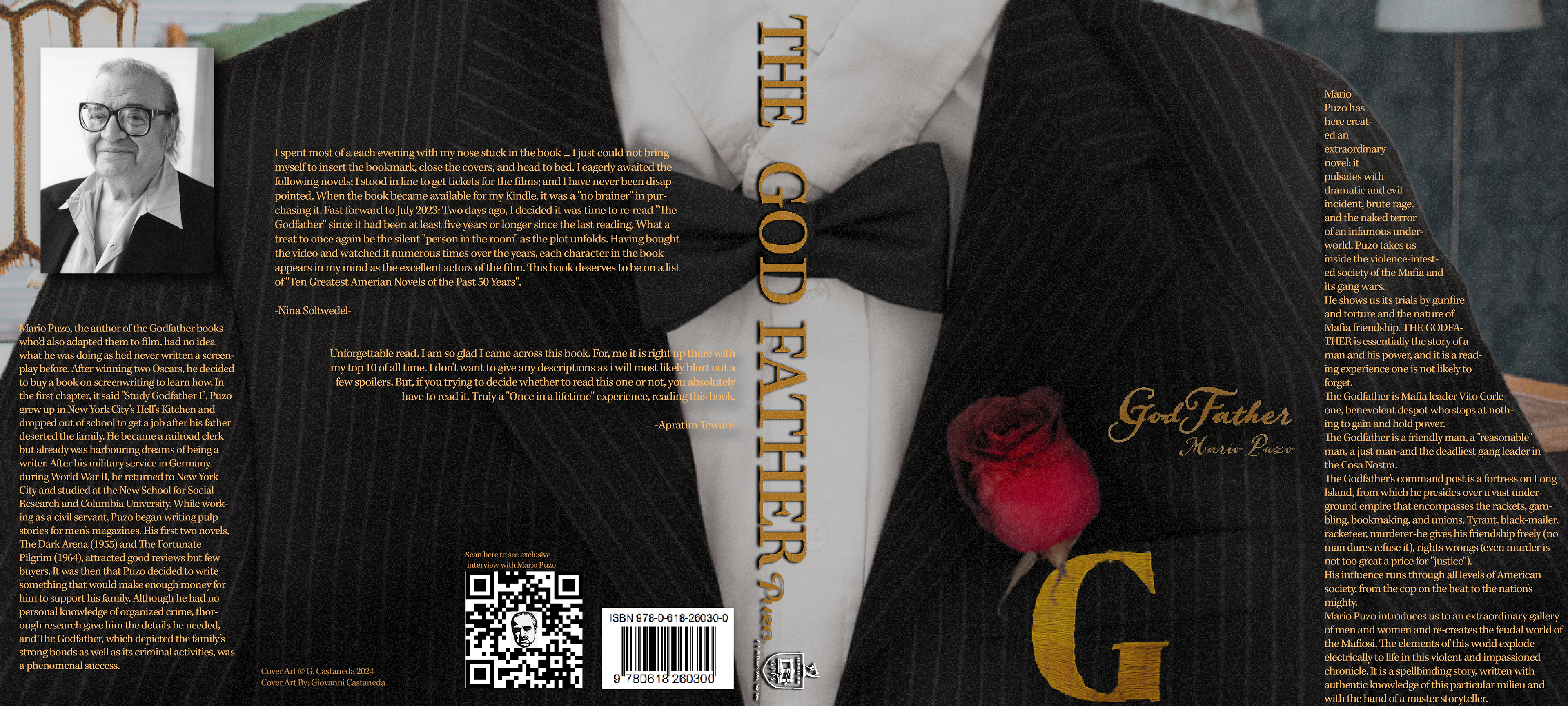 This is a book cover jacket for the godfather book. I integrated both the vibe of the lifestyle in this book as well as some noticeable things seen in the film.